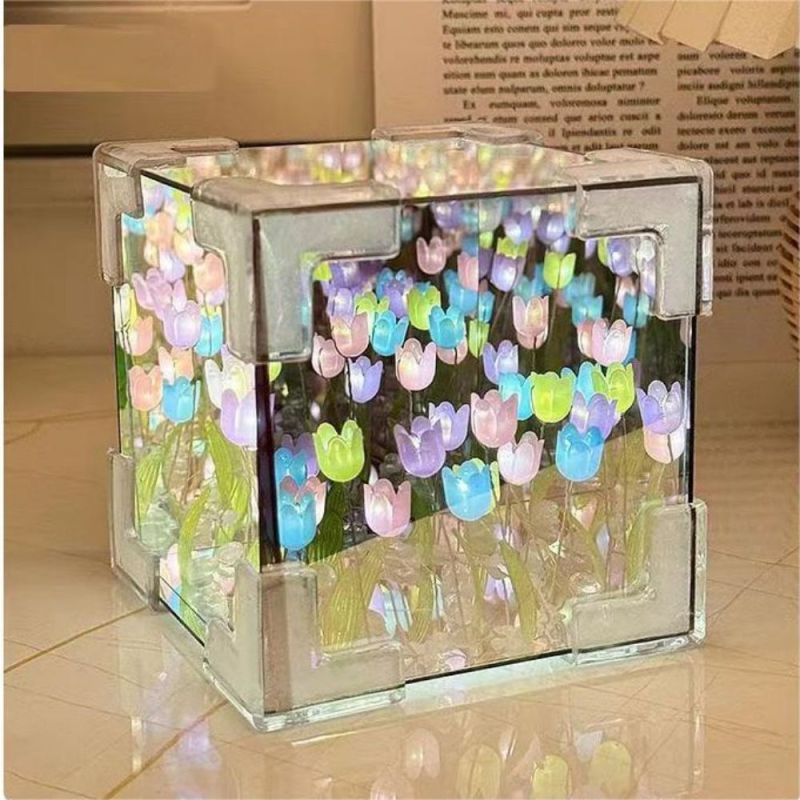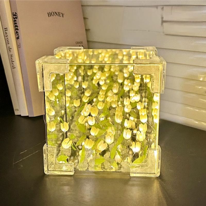 - Mesmerizing Infinite Mirror Effect: Watch as the LED lights illuminate the delicate acrylic tulips, creating a captivating illusion of an endless blooming garden.