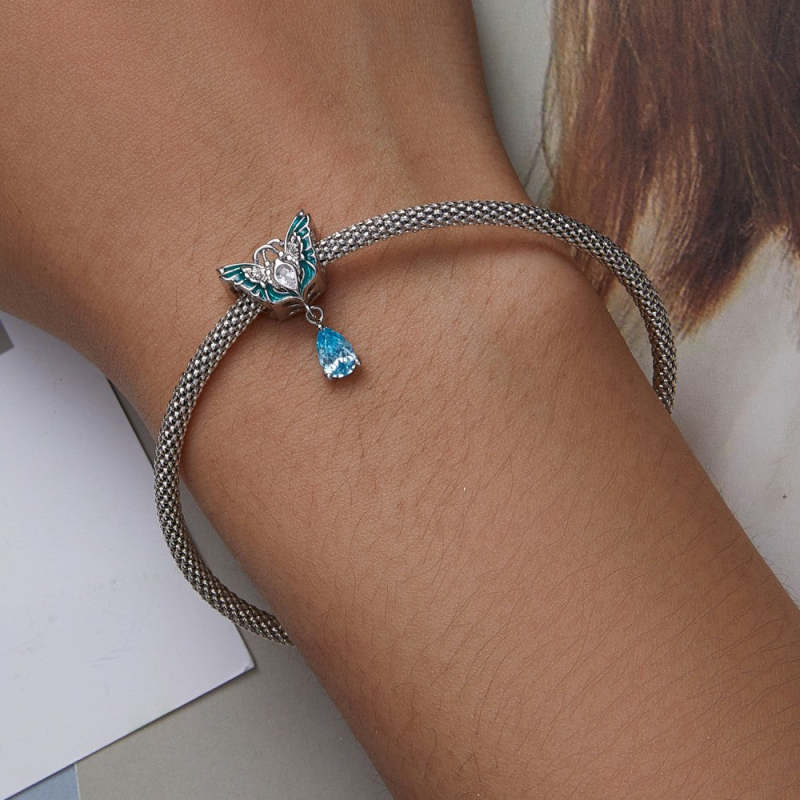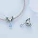 Double Butterfly Green Charm Silver