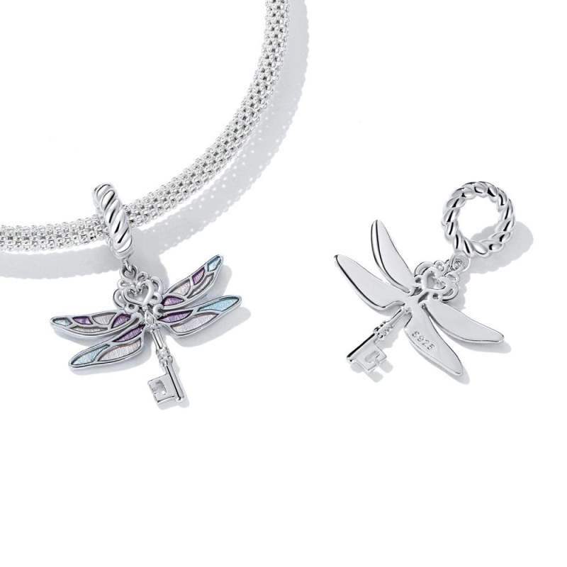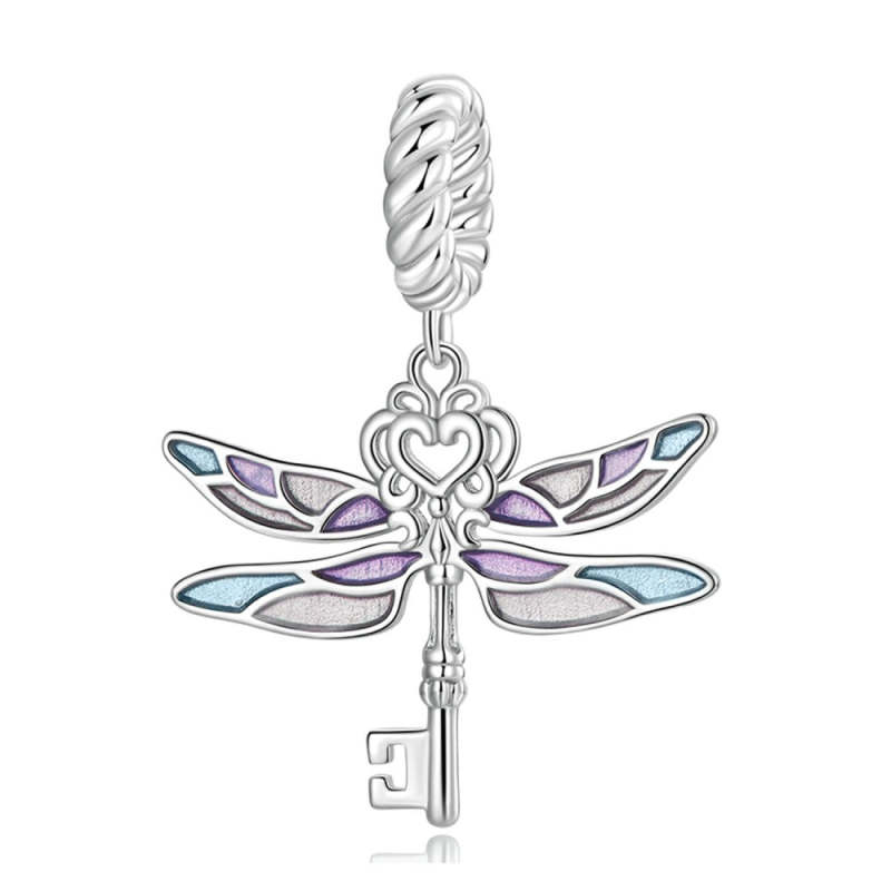 Dragonfly Key Dangle Charm Silver
