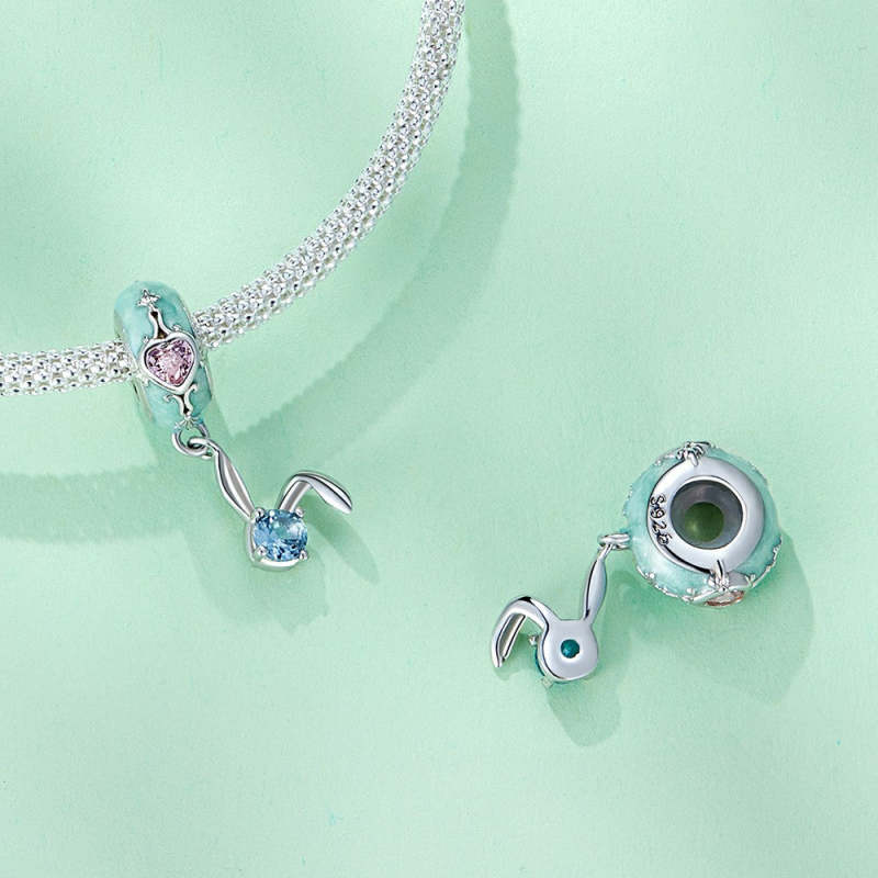 Easter Bunny Stopper Charm Spacer Charm Silver Easter Gifts