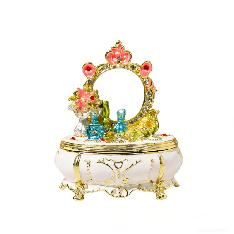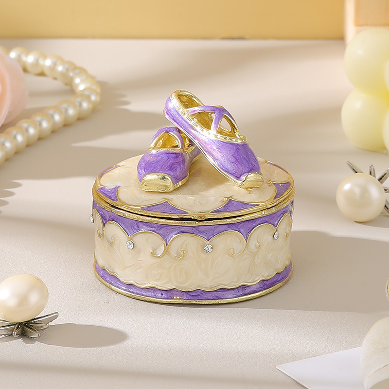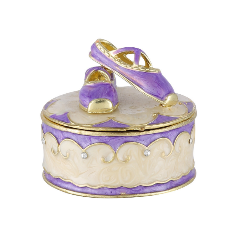 This delicate enamel ring box is a charming way to store your most meaningful jewelry. Crafted with glossy enamel and detailed accents, it doubles as a mini keepsake box, perfect for rings, earrings, or sentimental trinkets.
