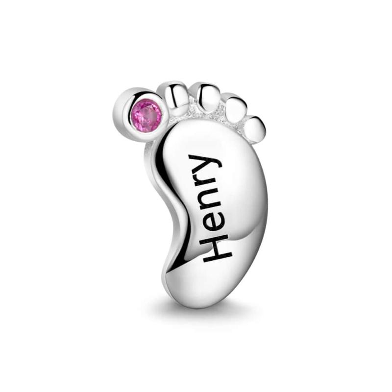 Engraved Charm Baby Feet Locket with Custom Birthstone