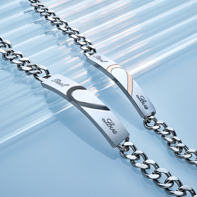 Engraved Couple Bracelet Personalized Love Heart Wide Chain Bracelet Valentine's Day Gifts