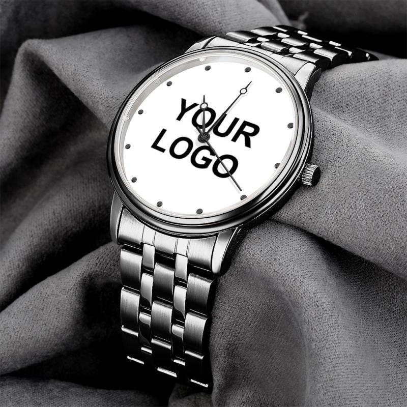 Engraved Men's Black Alloy Bracelet Photo Watch 38mm Business Gift For Him