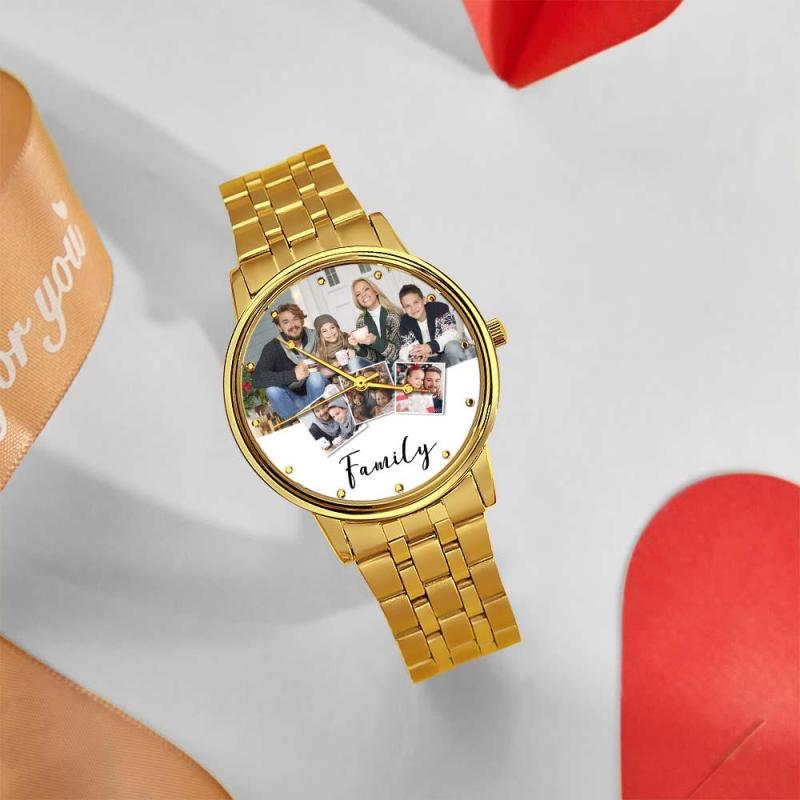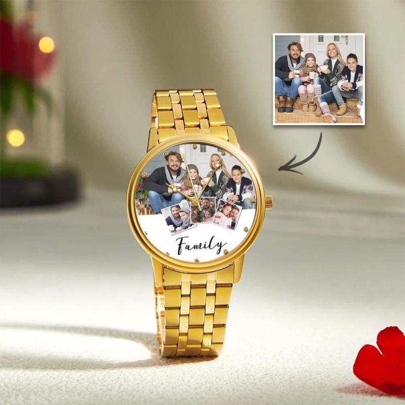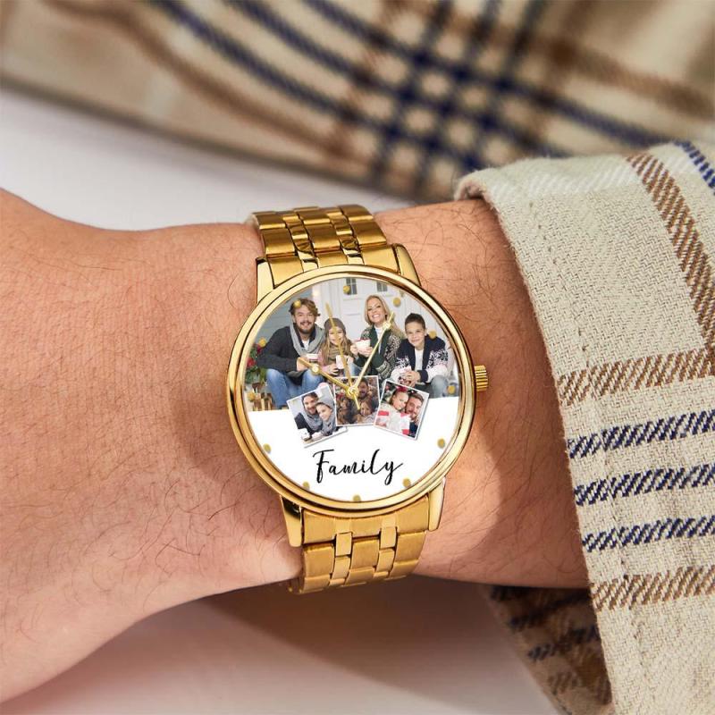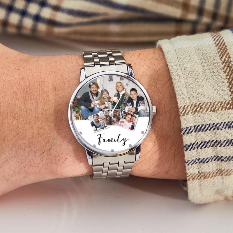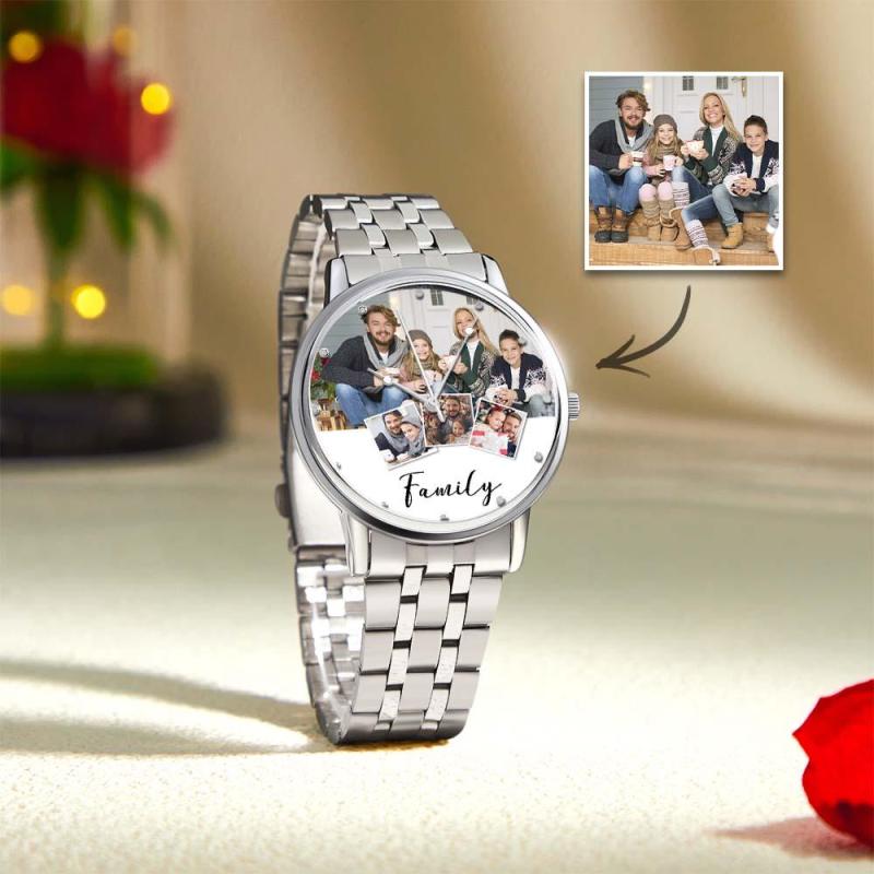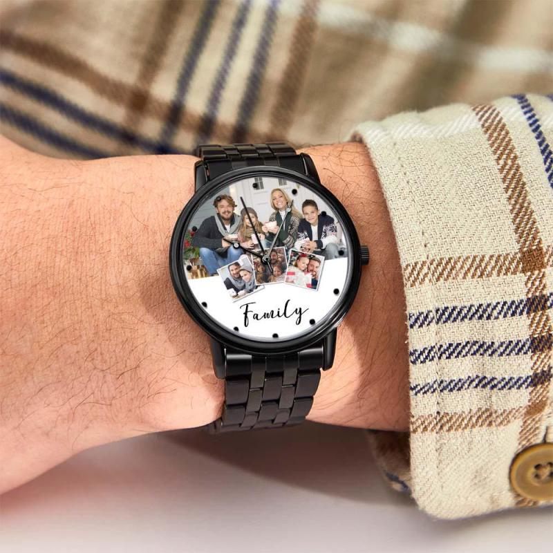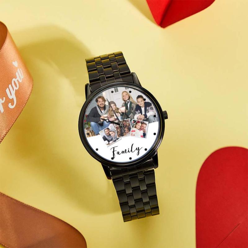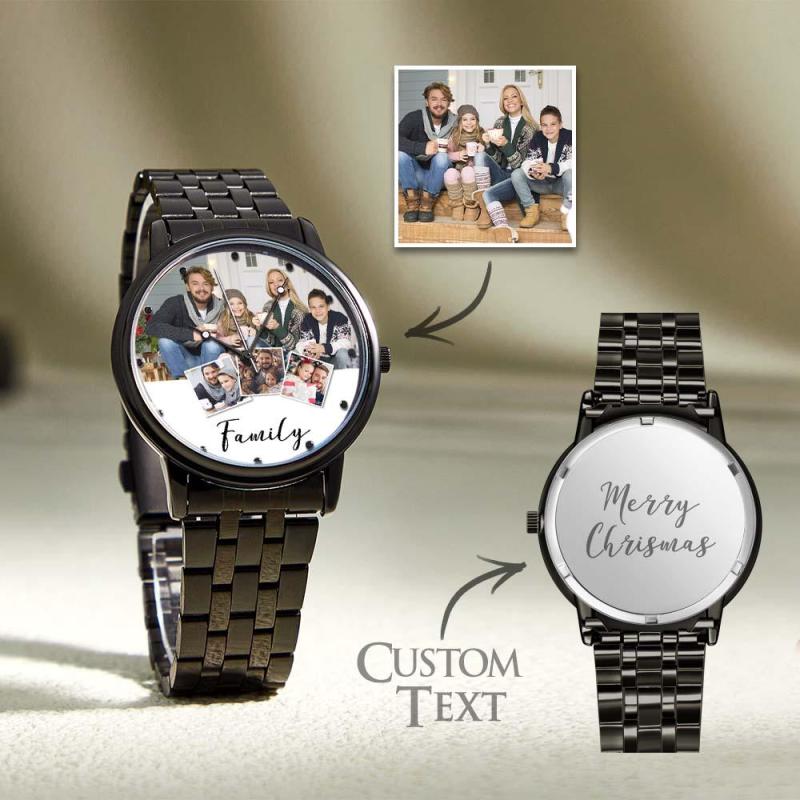 Personalized Engraved Photo Watch Men's Black Alloy Bracelet Photo Watch Christmas Gifts For Family