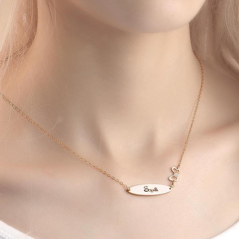 Engraved Necklace with Little Bow Memorial Gift For Girl Rose Gold Plated