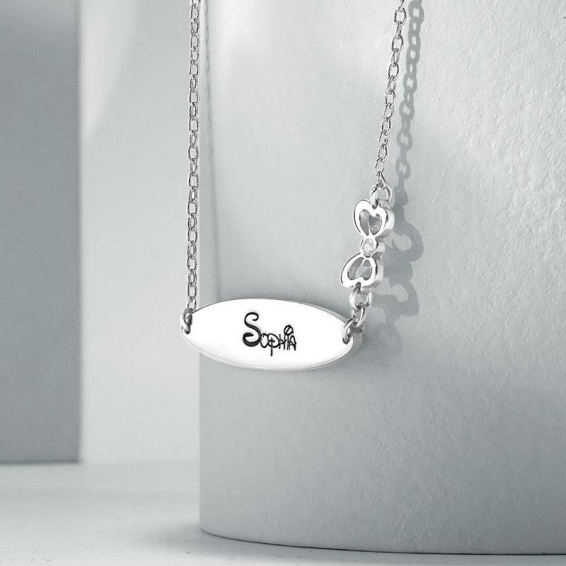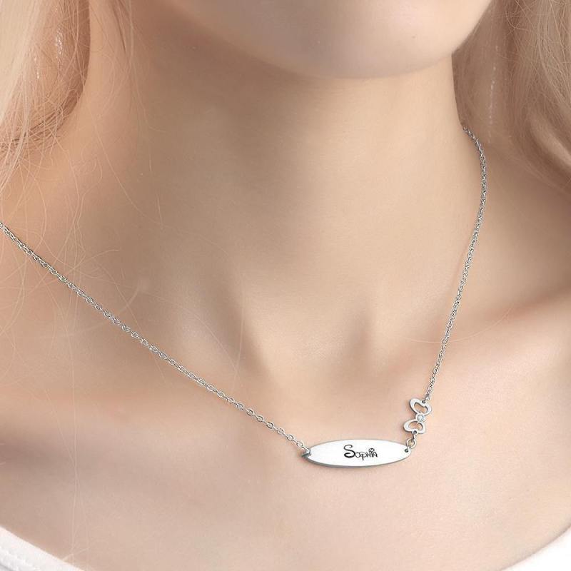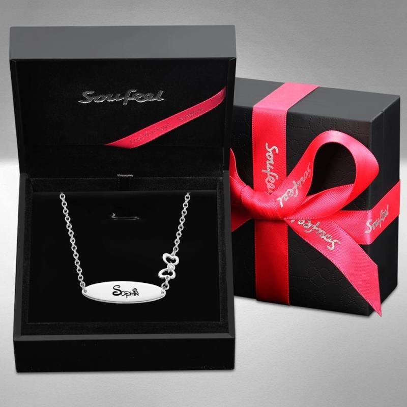 Engraved Necklace with Little Bow Memorial Gift For Girl Silver