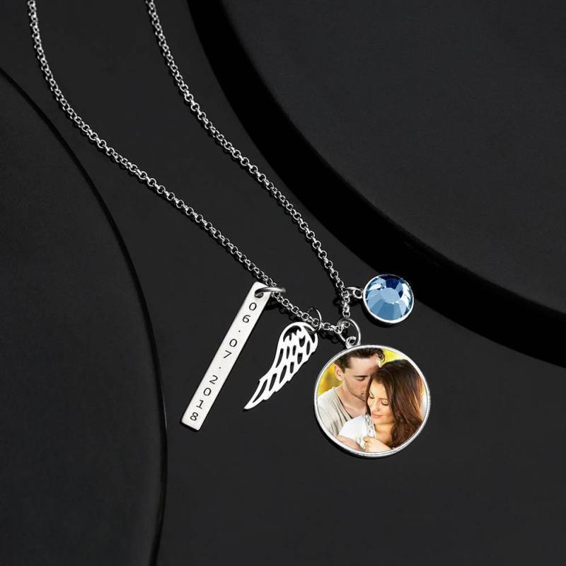 Engraved Round Tag Photo Necklace Silver