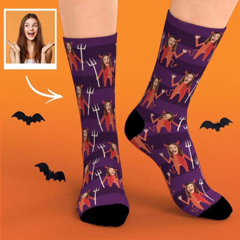 Face Socks With Your Funny Face Custom Face Little Devil Halloween Gifts