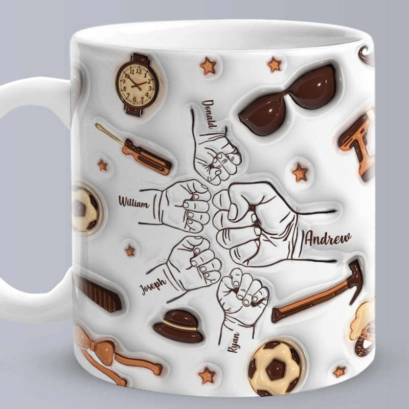 Father's Day Gifts Personalized 1-6 Kids Names Custom 3D Inflated Effect Printed Mug for Papa or Grandpa