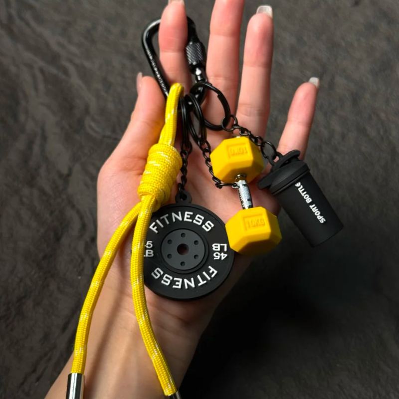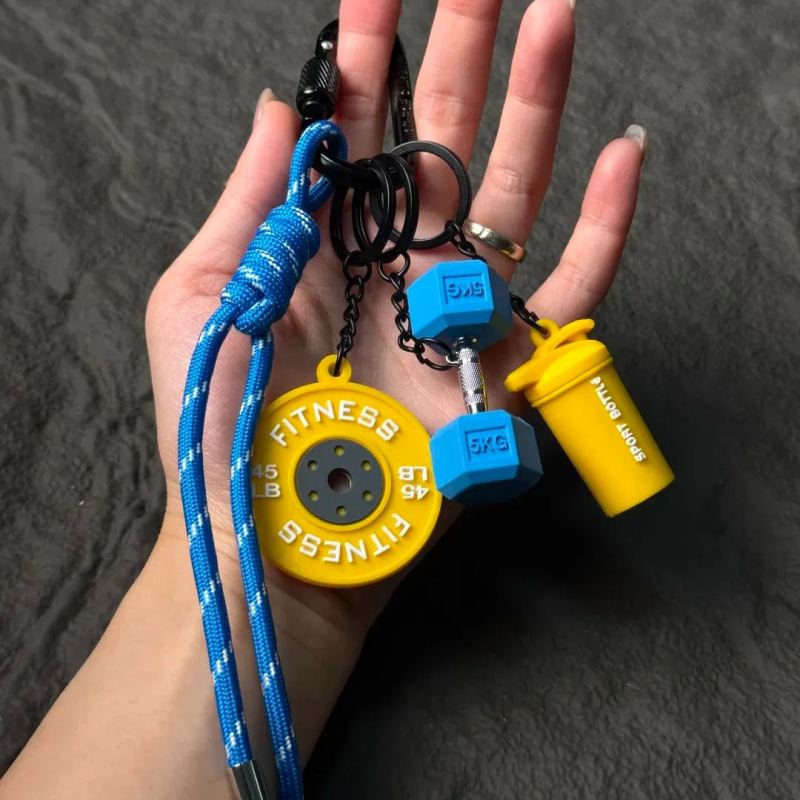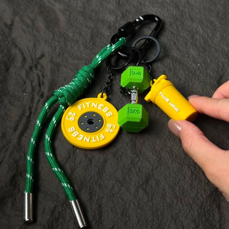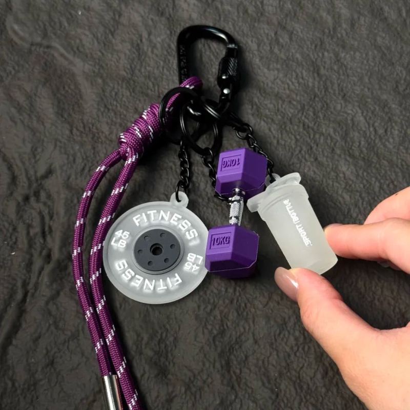 Crafted from high-quality, durable rubber (with premium metal hardware for long-lasting use), this mini dumbbell pendant is lightweight yet incredibly sturdy, built to withstand daily wear and tear while keeping its sleek, sporty look. It comes complete with a matching fitness-themed disc charm, a mini sport bottle charm, and a rugged woven paracord strap with a secure carabiner clip, making it perfect for attaching to keys, backpacks, gym bags, or workout gear.
