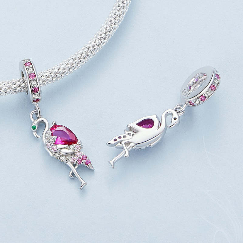 Flamingo Dangle Charm Silver