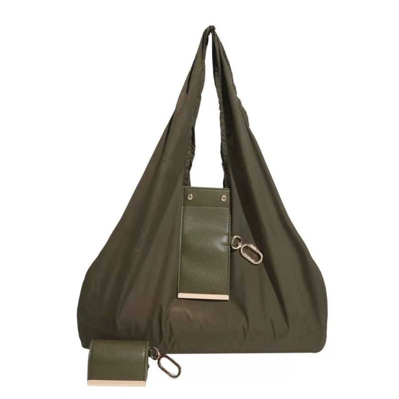 This clever design transforms a large-capacity reusable tote bag into a compact keychain pouch you can carry effortlessly on your bag, keys, or belt.