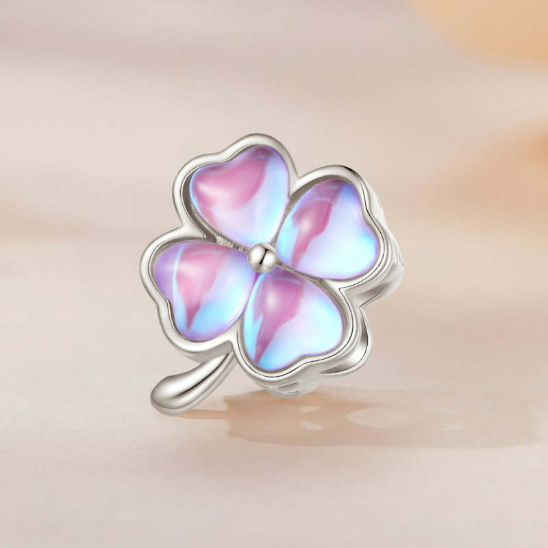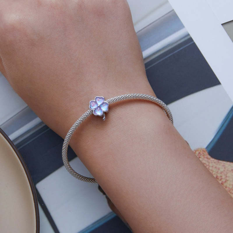 Four Leaf Clover Purple Charm Silver