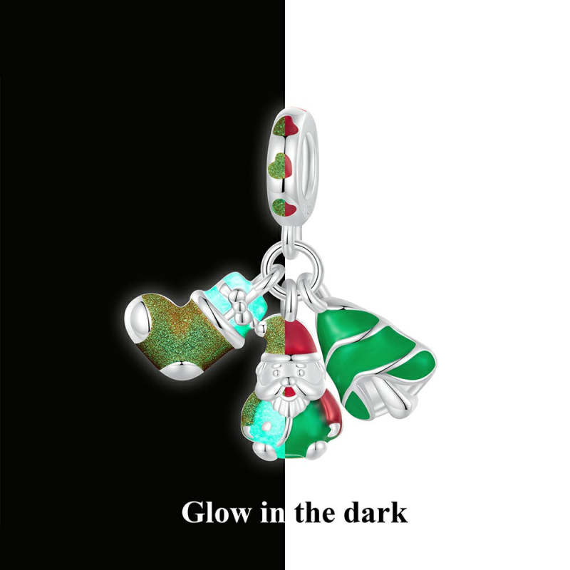 Glow-in-the-dark Christmas Dangle Charm Silver