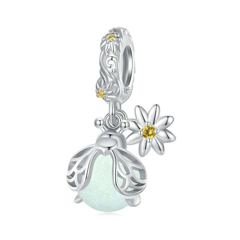 Glow-in-the-dark Firefly Dangle Charm Silver