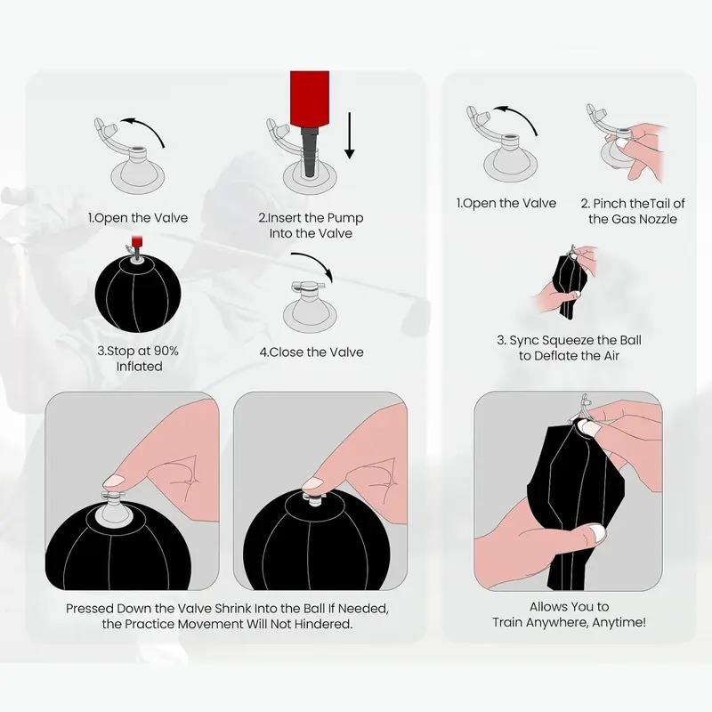 The Golf Smart Ball is an innovative training aid designed to elevate your game. This portable inflatable ball targets your forearm and arm posture, helping you develop better swing mechanics and consistency. Comes with an easy-to-use air pump for quick inflation, making practice sessions efficient and mess-free. The Swing Trainer is ideal for golfers of all levels who want to improve posture, alignment, and distance control. A thoughtful gift for golf enthusiasts, the Golf Smart Ball combines practicality with measurable results, turning focused practice into improved performance on every course.