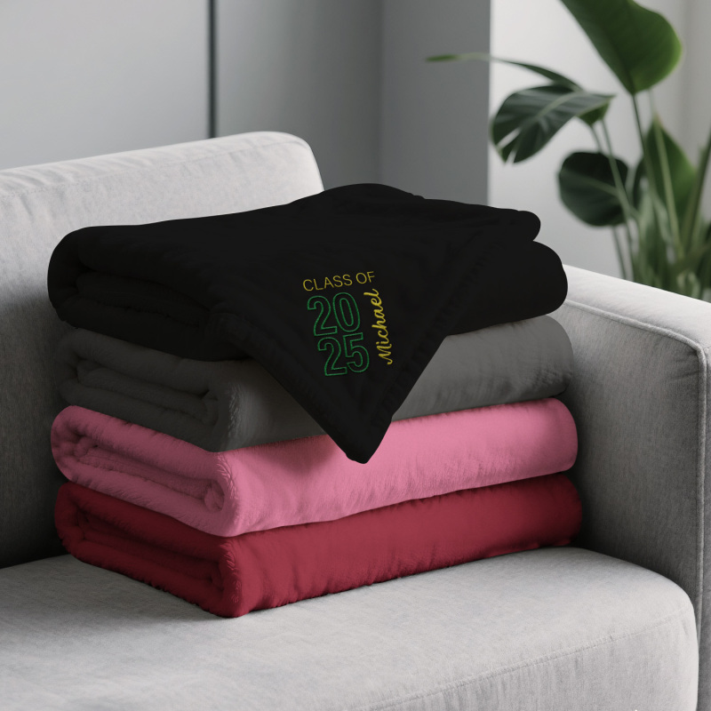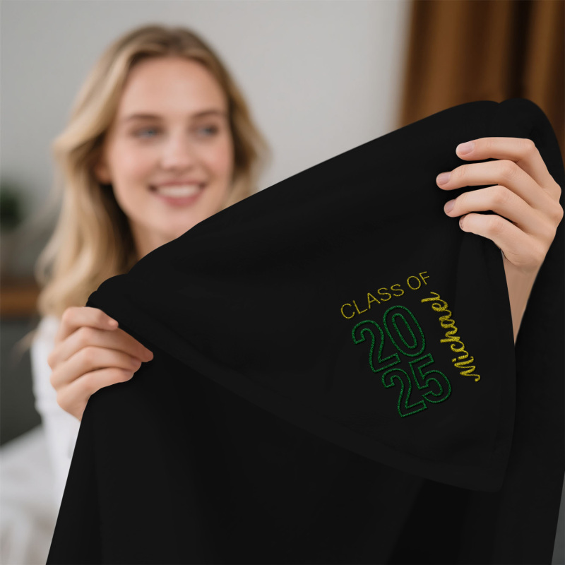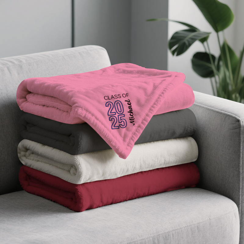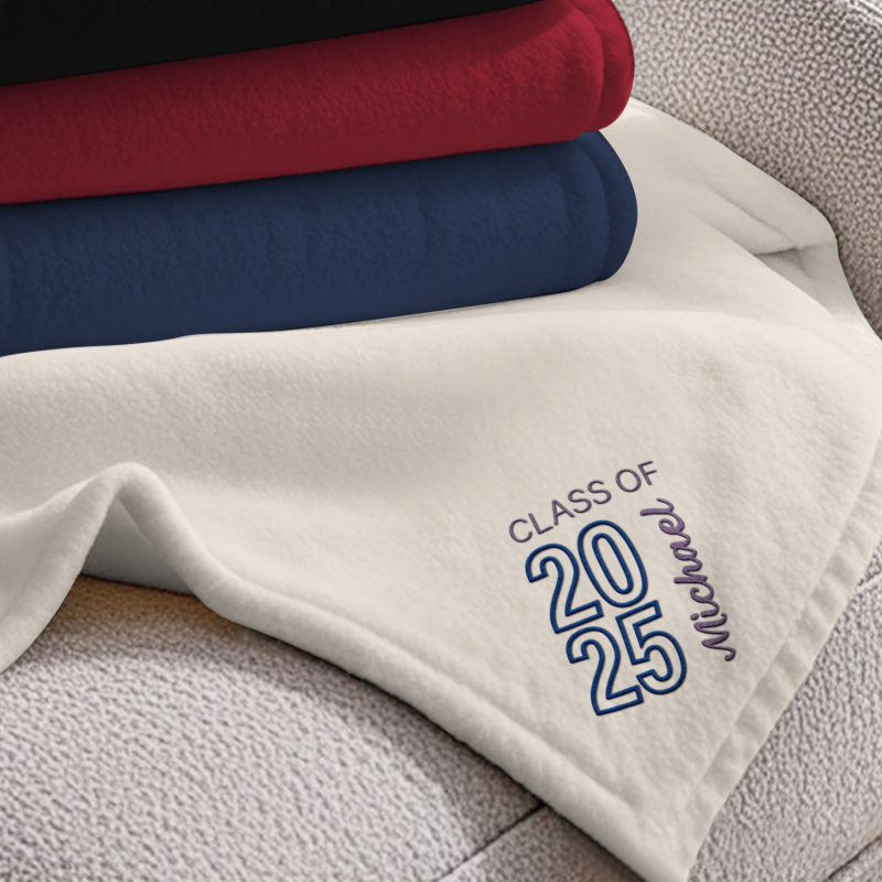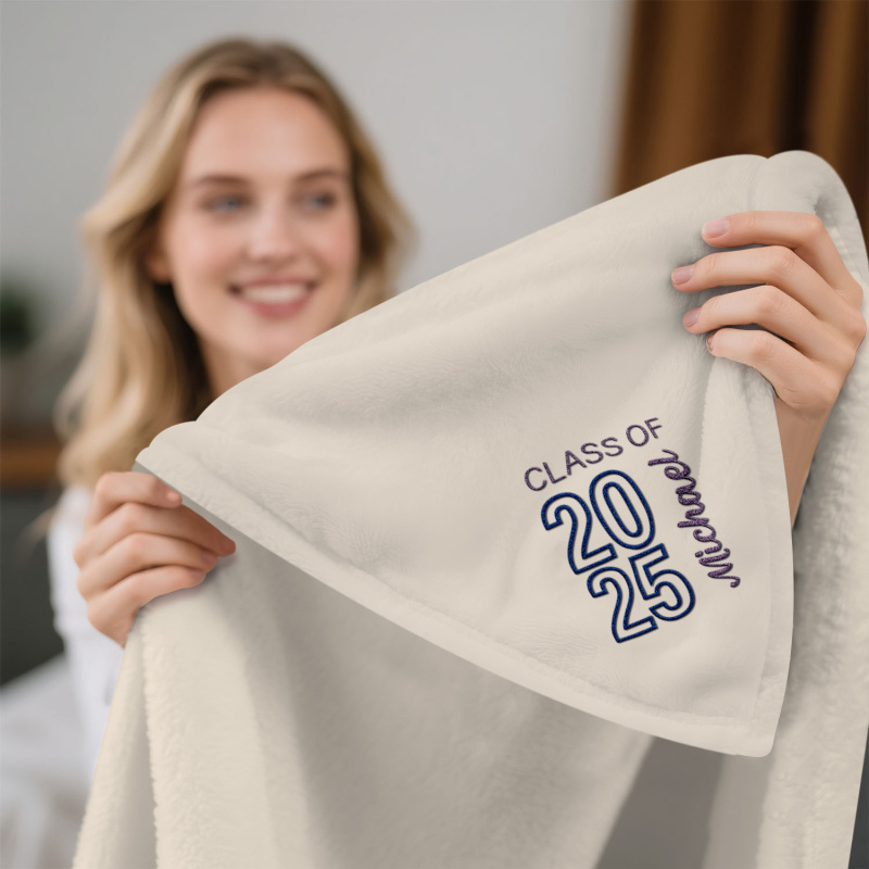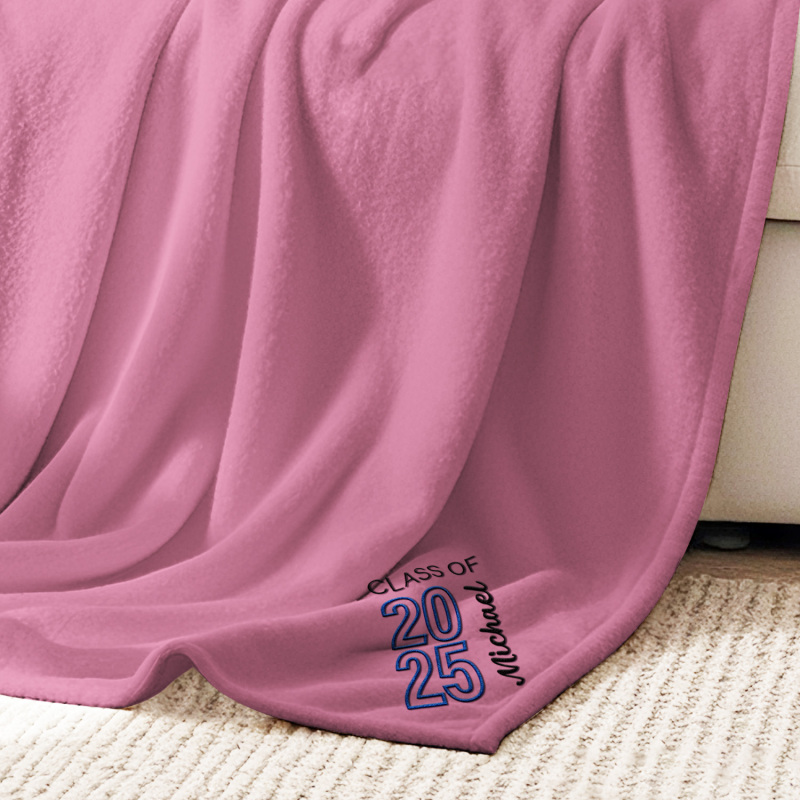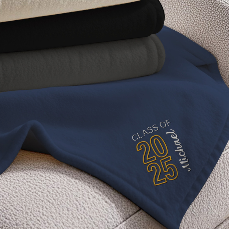 Celebrate achievement with the Graduating Class Of Embroidered Fleece Blanket, available in Grey, Pink, Black, Beige, and Navy. Choose from three sizes: 70*100cm, 100*120cm, or 120*200cm—perfect for commemorating special moments in style and comfort.