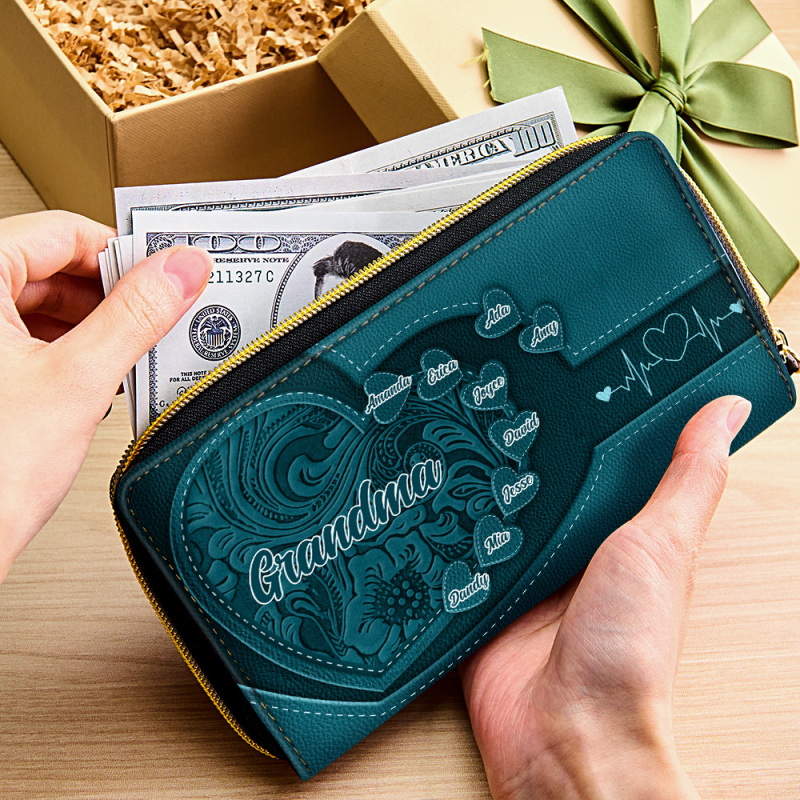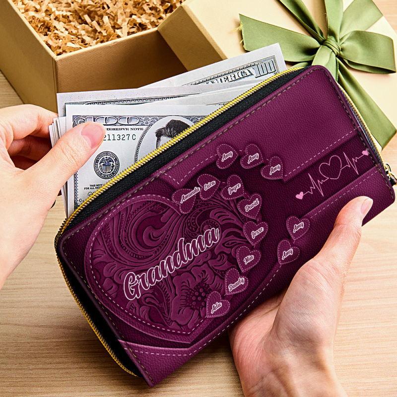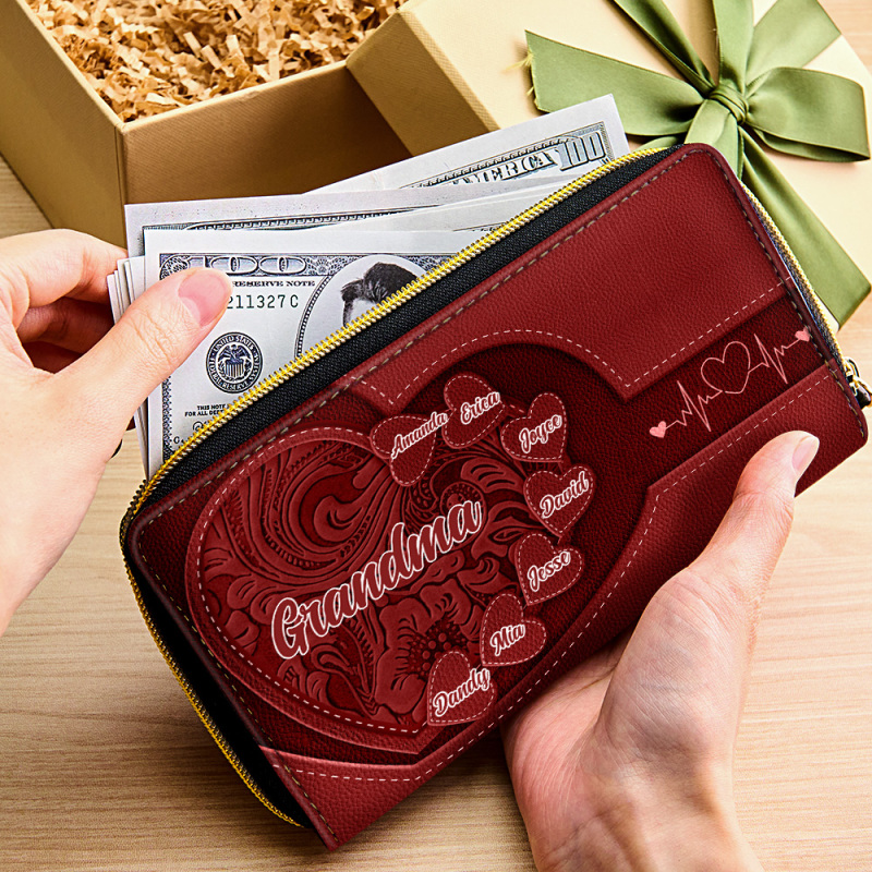 Personalized Leather Long Wallet Grandma's Little Sweethearts Leather Wallet with Text Gift for Her Mother's Day Gifts