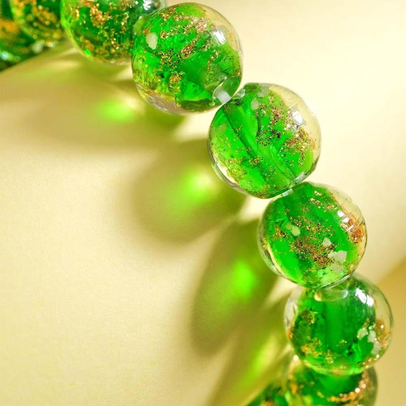 Green Firefly Glass Stretch Beaded Bracelet Glow in the Dark Luminous Bracelet