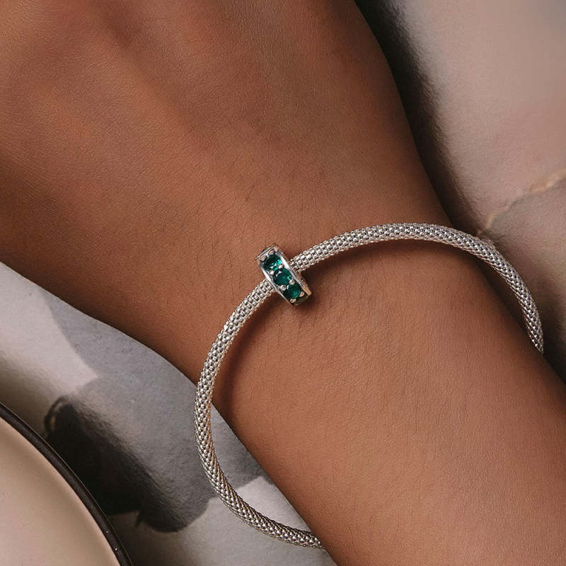 Green Gemstone Stopper Charm Spacer Charm Silver