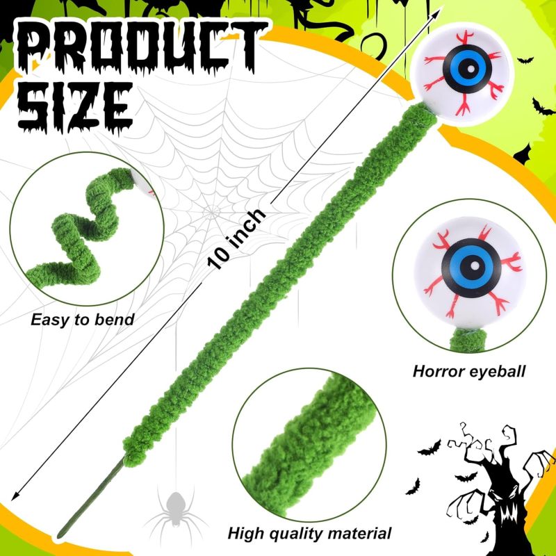 Scary Halloween Decoration: you will receive 12 green fake eyeball branches, you can bend it into the shape you want, insert it into your flower pot, and create a scary Halloween Piranha decoration by yourself