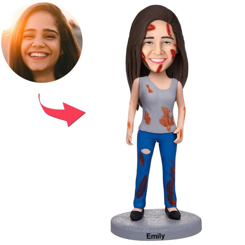 Halloween Gifts - Zombie Women Custom Bobblehead With Engraved Text