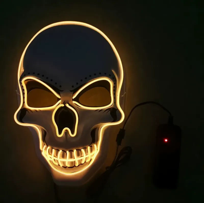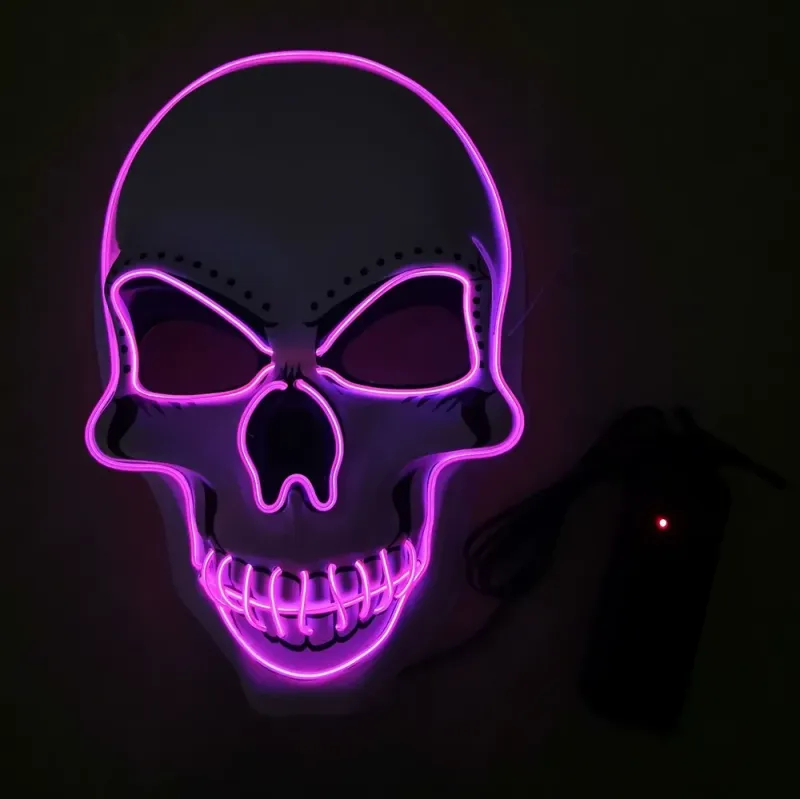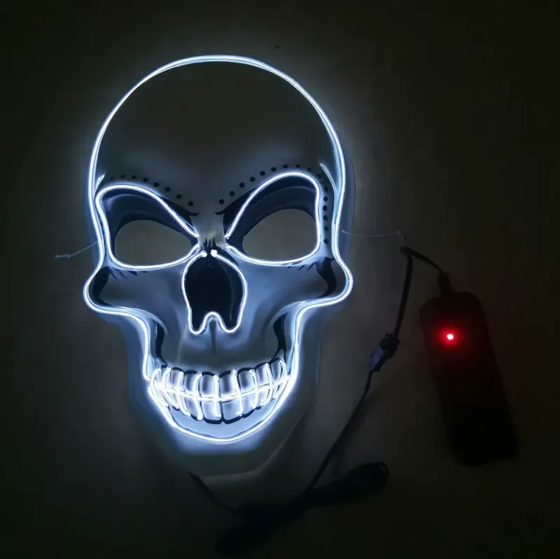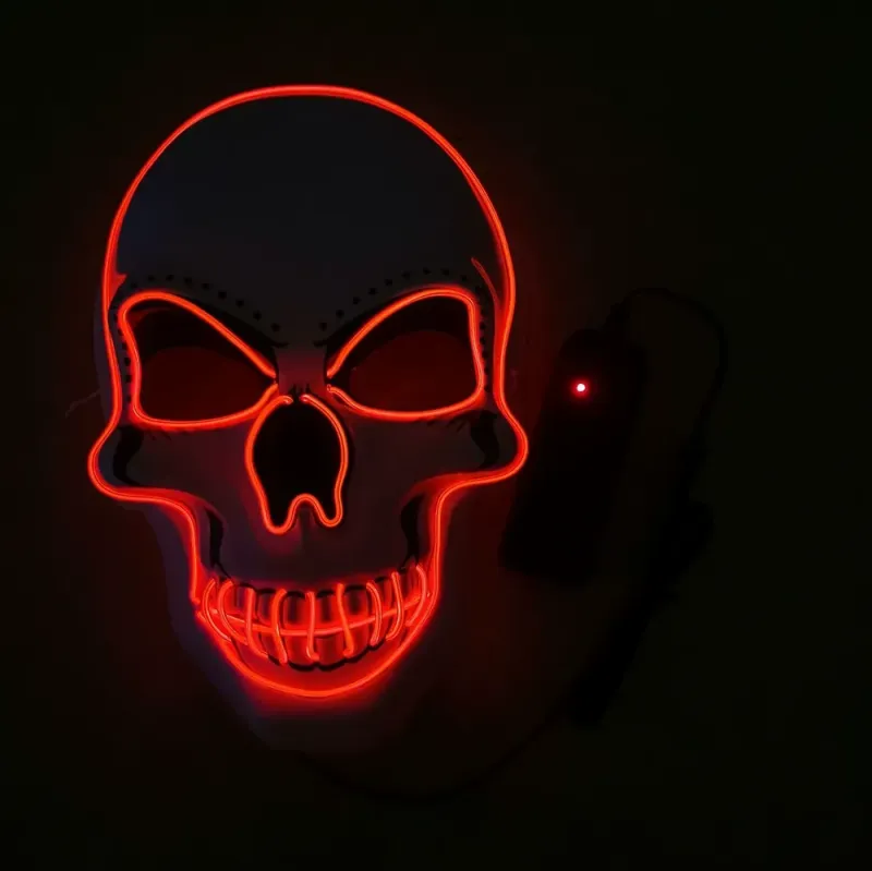 Introducing the Halloween LED Mask! This unique mask is perfect for your Halloween costume party. It features an eerie glow-in-the-dark design, adding an extra spooky touch to your outfit. Ideal for purging hackers or skeleton enthusiasts, this mask brings a thrilling experience. Enhance your party with this distinctive accessory.