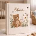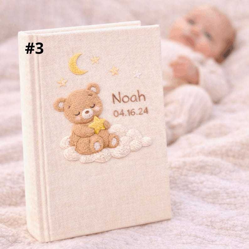 Customize the album with your baby's name to make it truly unique. The placement and color palette of the name are carefully selected to blend seamlessly with the overall design.