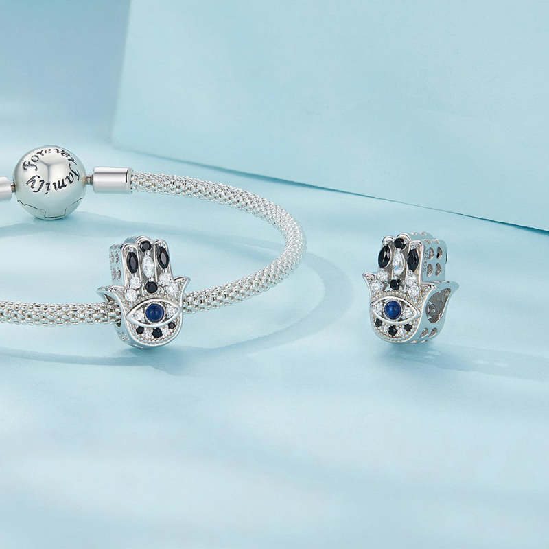 Hand of Fatima Evil Eye Charm Silver