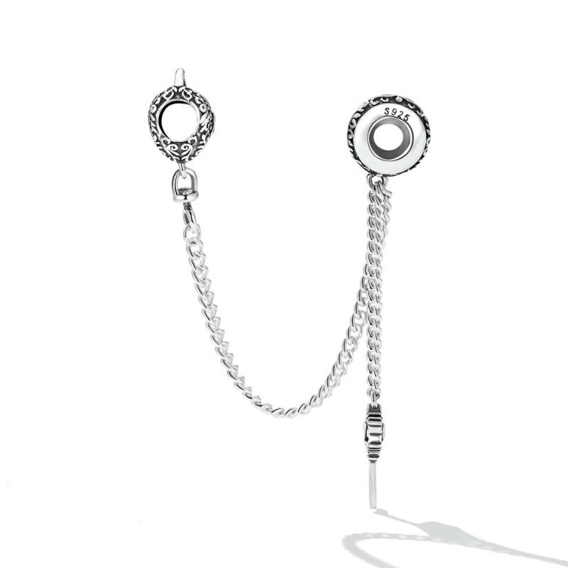 Heart Lock Key Safety Charm Chain Silver