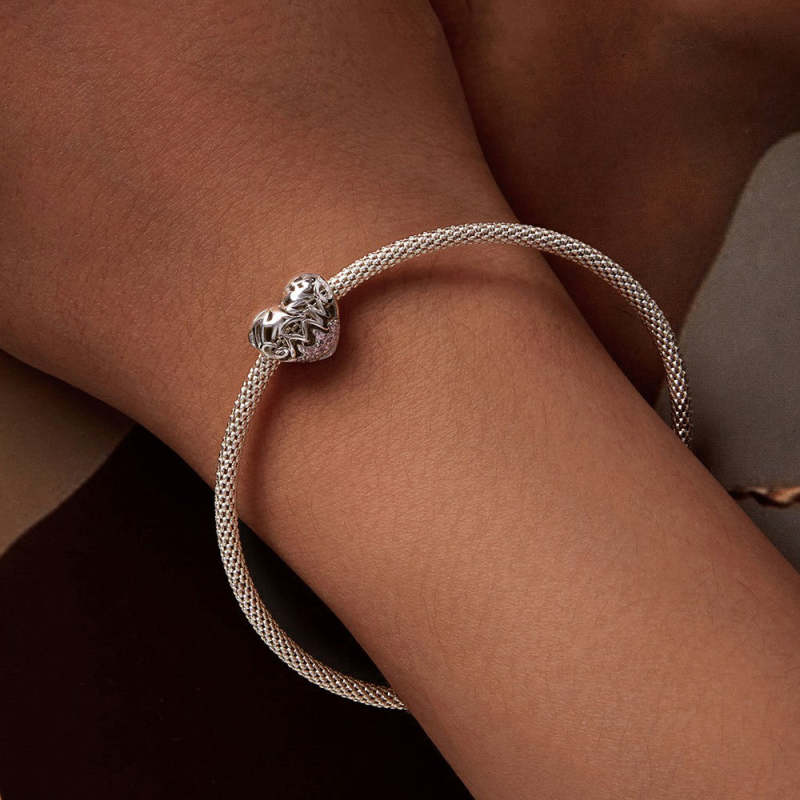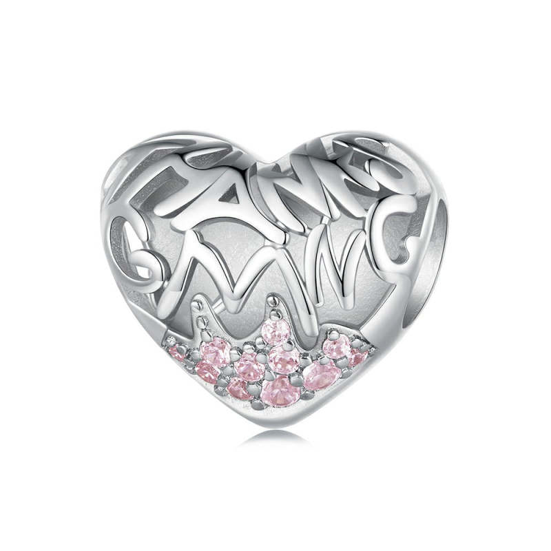 Heart Pattern Pink Diamond Charm Silver