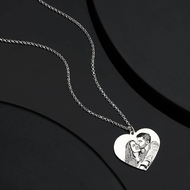 Women's Heart Photo Engraved Tag Necklace Silver