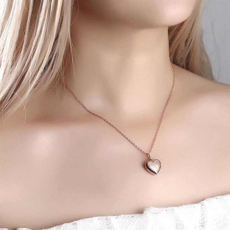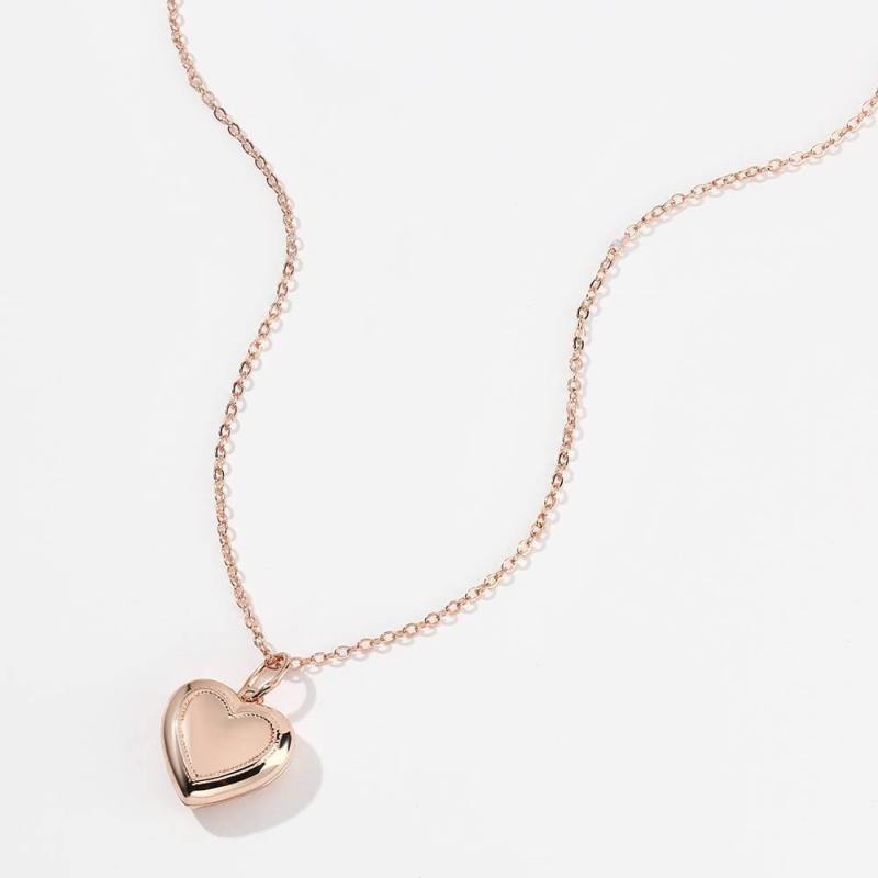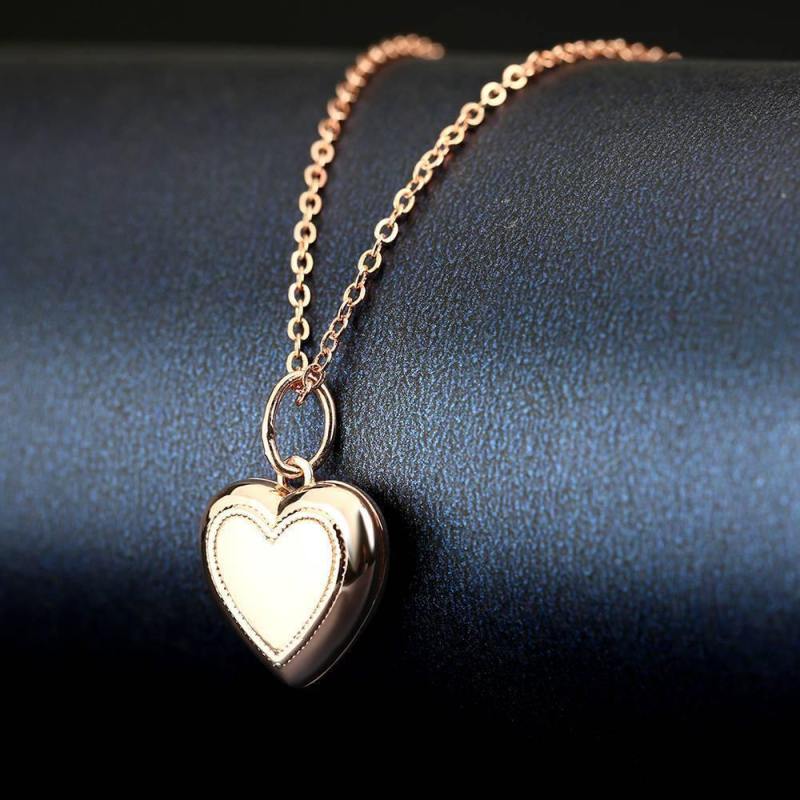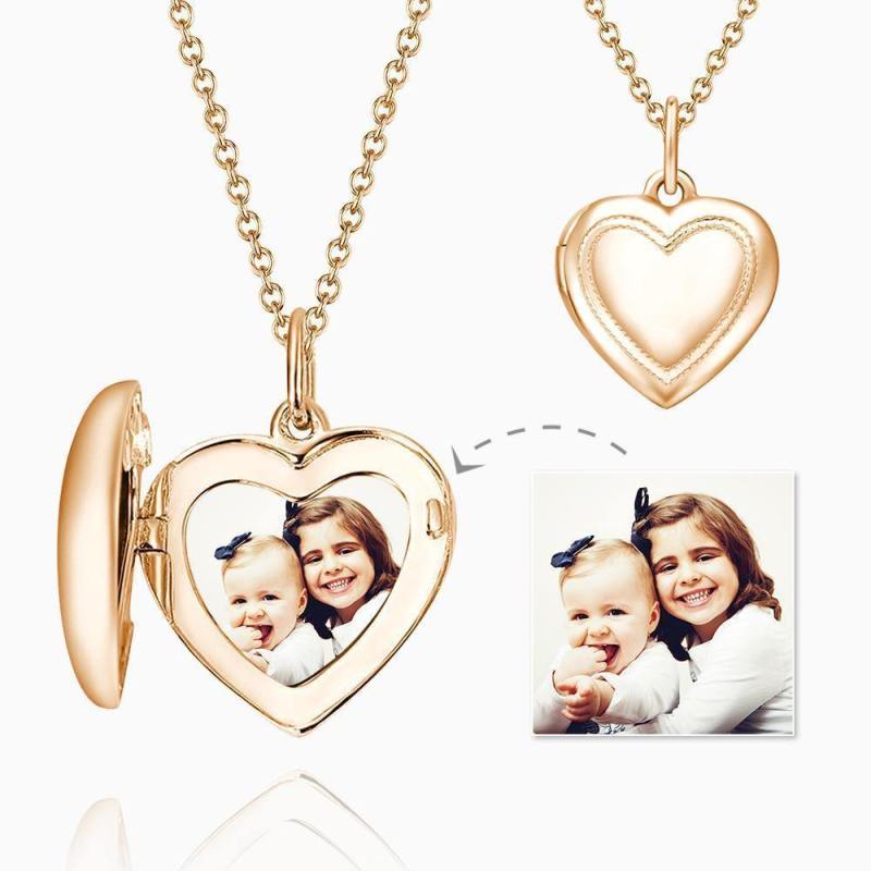 Heart Printing Photo Locket Necklace with Engraving Rose Gold Plated