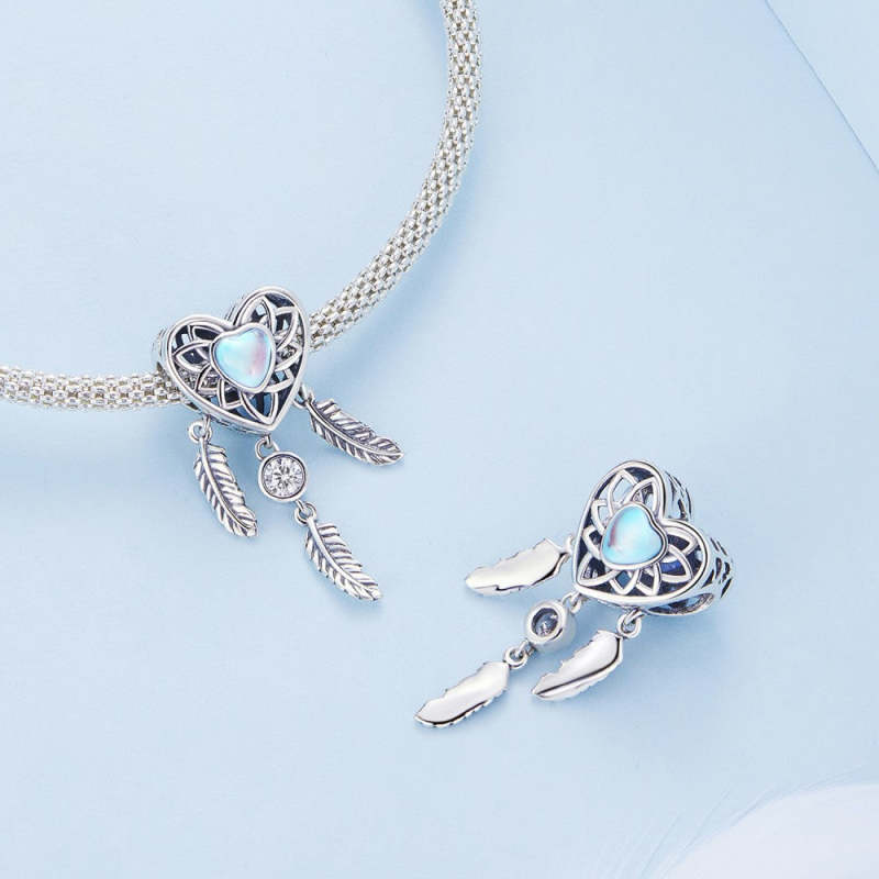 Heart Shaped Dream Catcher Charm Silver