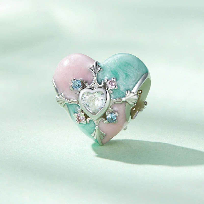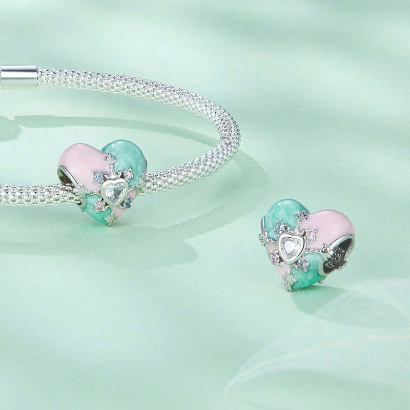 Heart Shaped Easter Colorful Charm Silver For Easter