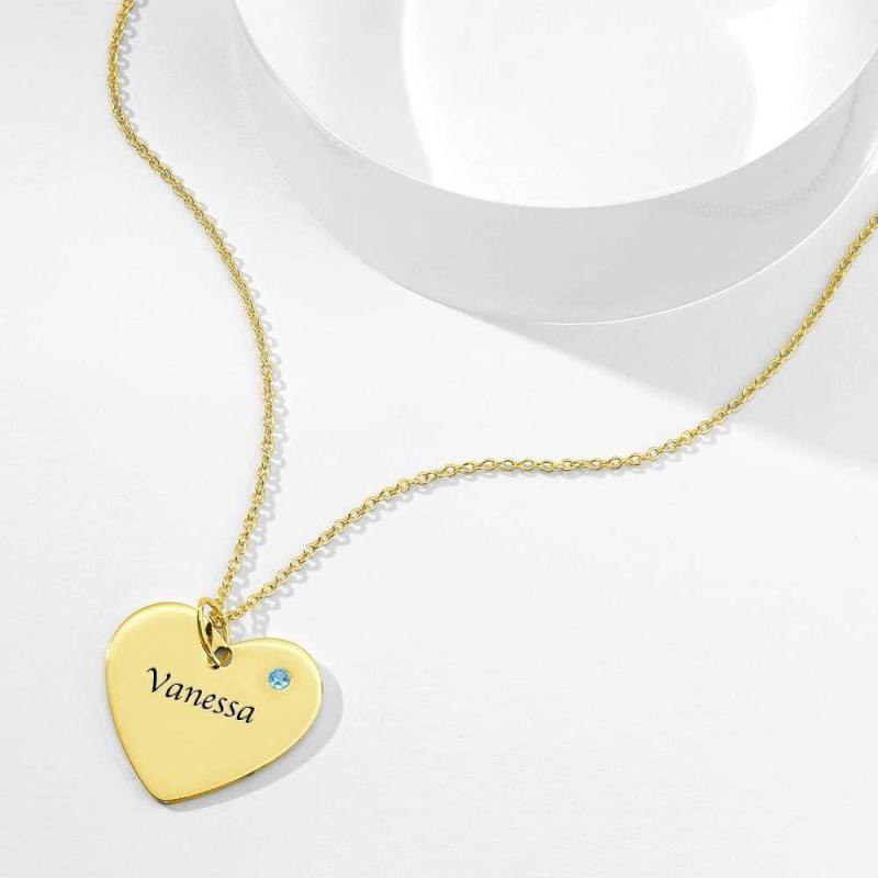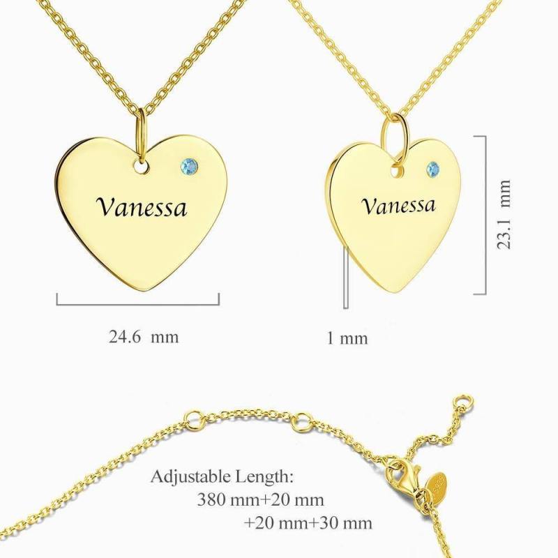 Heart Tag Personalized Birthstone Necklace with Engraving 14k Gold Plated Silver