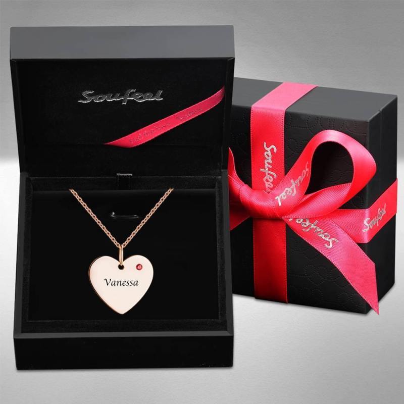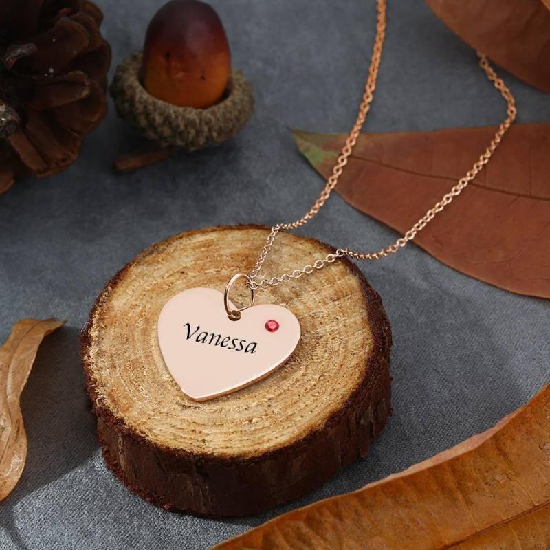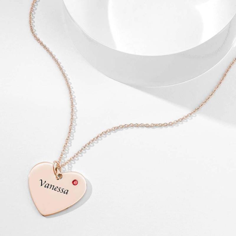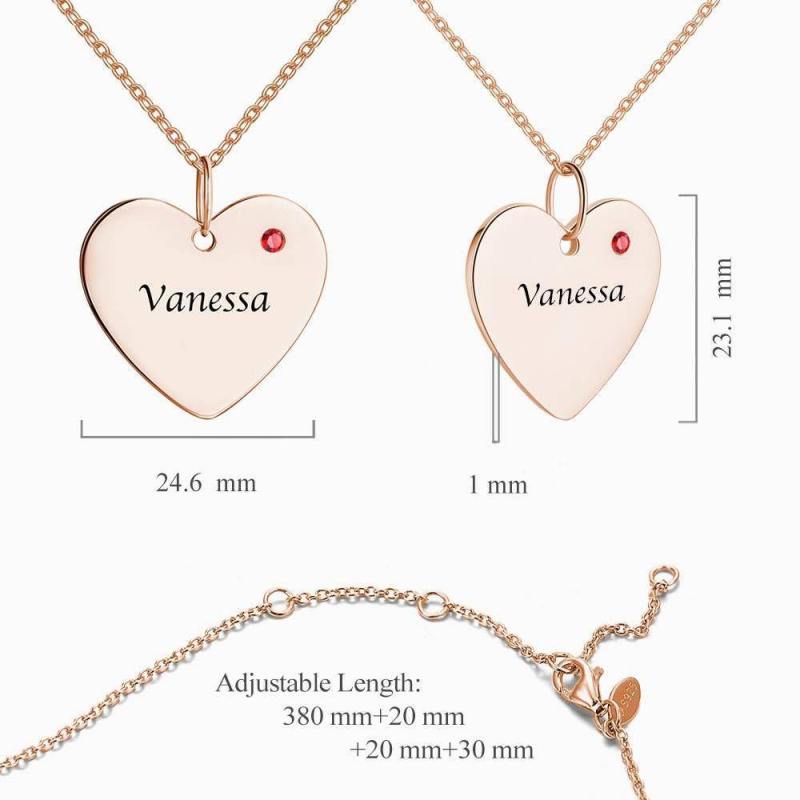 Heart Tag Personalized Birthstone Necklace with Engraving Rose Gold Plated Silver