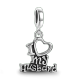 Love your husband and want to show the world how much you care for him? Or maybe you are the husband and want to surprise your spouse with an ultra-sweet gift? Then the I Love My Husband bracelet charm is the perfect piece for you to purchase. Seen here is a .925 sterling silver jewelry design that will never go out of style. What’s great is that this silver charm can be worn strung up on a necklace or a bracelet. And because it is a plain silver jewelry accessory, it can easily be matched with all other types of charms. It is a sleek, three-row design that hangs from a single bead. In place of the word ‘love’ is an actual heart that is very endearing.