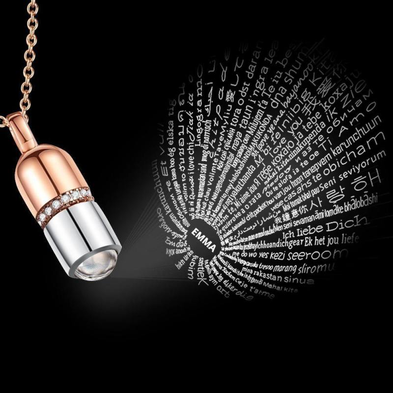 I Love You Necklace in 100 Languages Projection Engraved Necklace Rose Gold