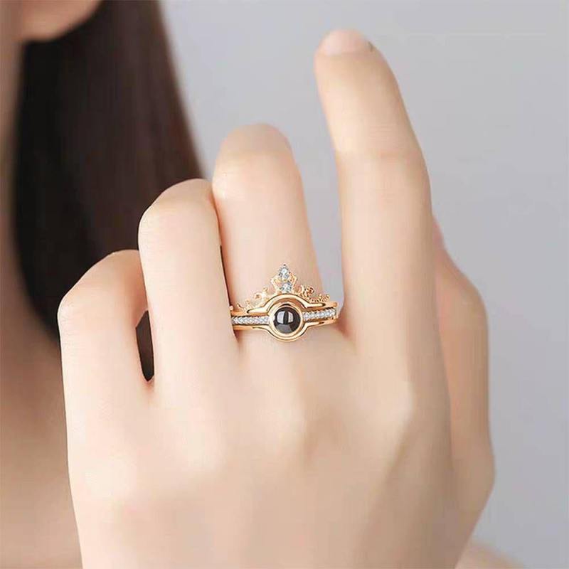 Tell someone special how much you love them with this stunning message-projecting ring. Simply hold the ring up to a light source, and it will project the words "I love you" in one hundred different languages. Best gift for birthday, Anniversary gifts, Wedding gift, Memorial, Mother's Day, Valentine's Day, Christmas Day, Friends gifts, could also be a Best Gift for Mother, Mom, Girlfriend, Present from Daughter, Kids. The perfect ring for everyday wear. It's recommended to remove the ring when around water or in any circumstances that the ring may get water or body oils on it. Soufeel has a ton of customized jewelry options that are reasonably priced and make for great gifts for all sorts of occasions like birthdays, holidays, anniversaries. I Love You Ring in 100 Languages Projection Photo Engraved Crown Ring, Romantic Gift Two in One Rose Gold Plated - Silver.