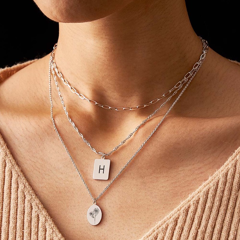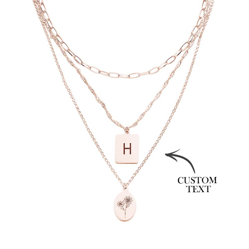 Layered Custom Letter Flower Necklace Personalized Necklace Anniversary Gifts for Women