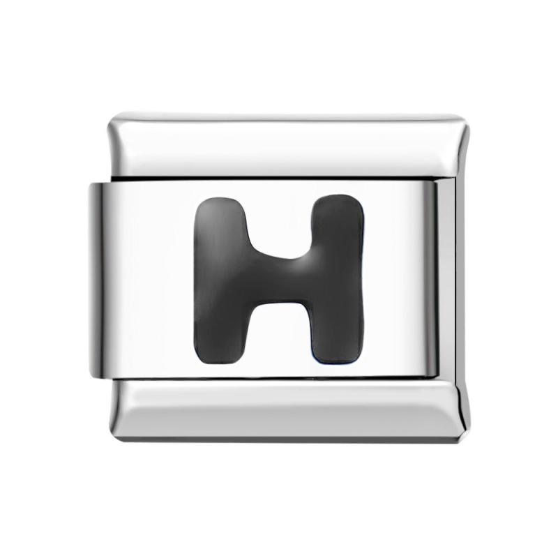 Letter H-Black Italian Charm For Italian Charm Bracelets Composable Link