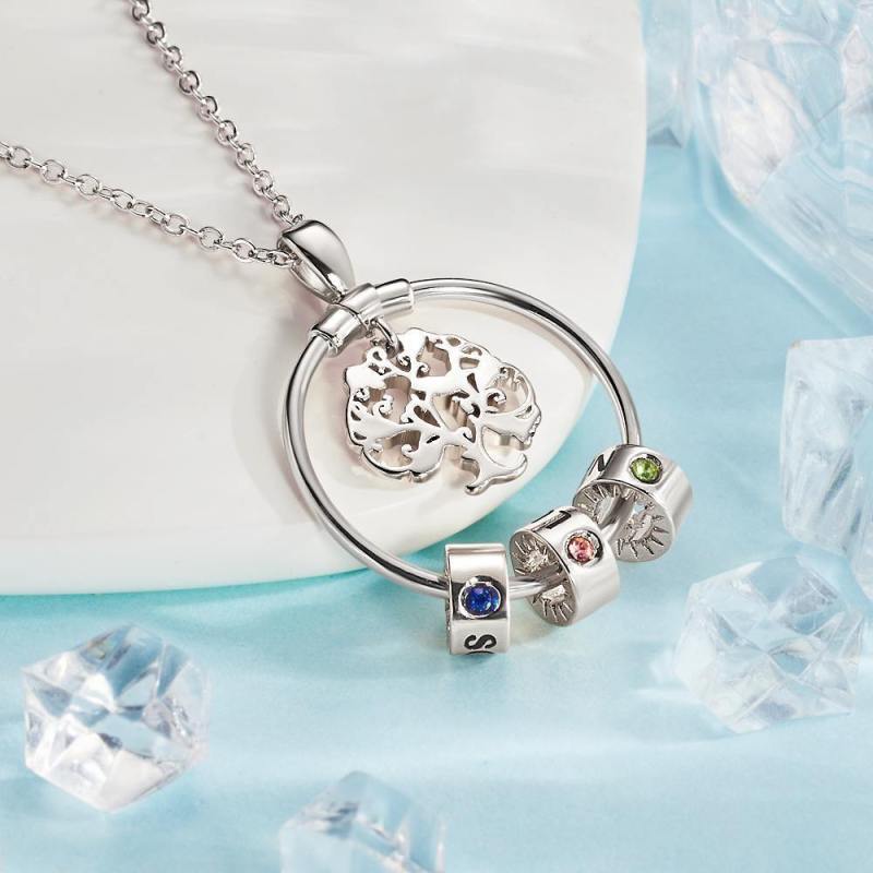 Life Tree Engraved Necklace With Custom One Birthstone Gifts - Silver
