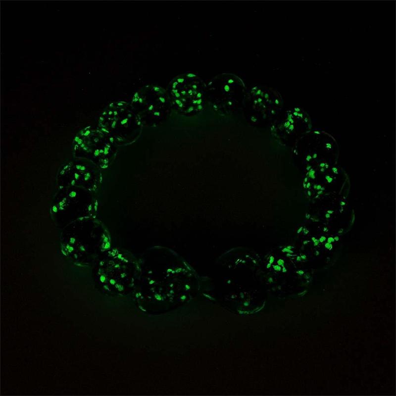 Lime Green Heart-to-Heart Firefly Glass Stretch Beaded Bracelet Glow in the Dark Luminous Bracelet