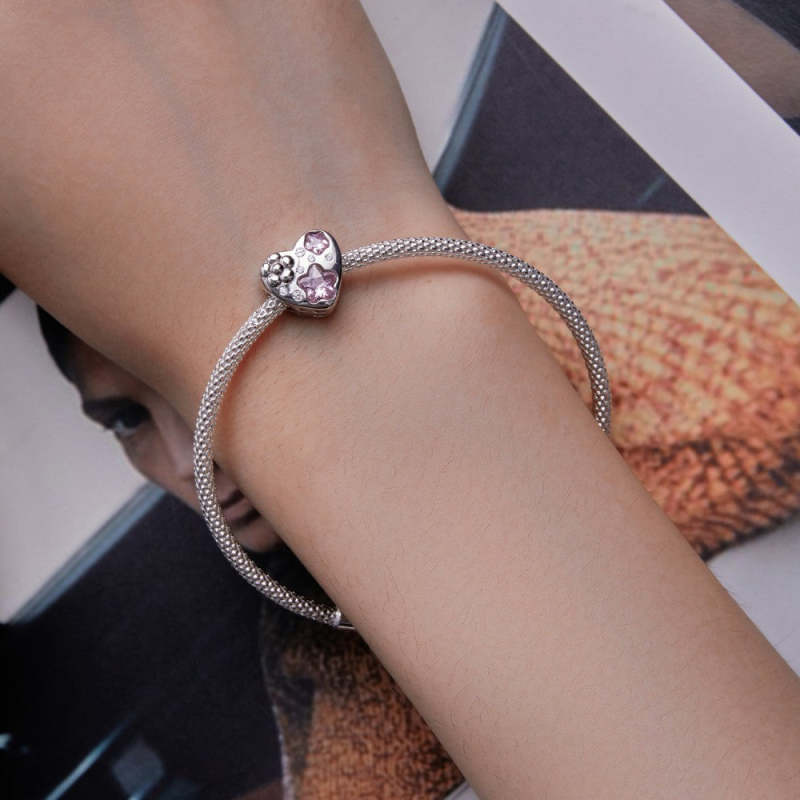 Love Flower Pink Charm Silver
