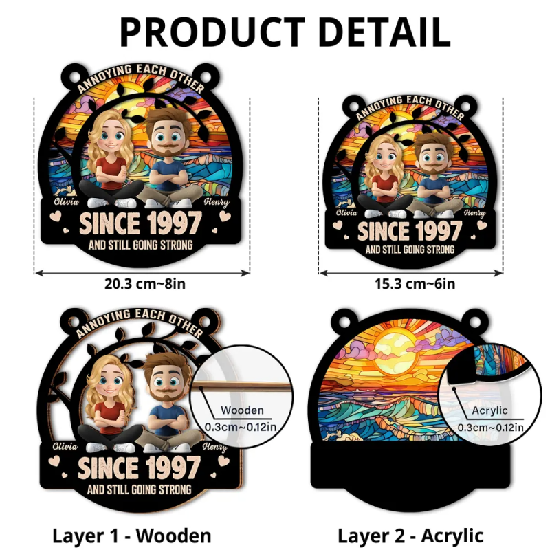 The front of this suncatcher is made from premium natural wood and mounted on acrylic plexiglass.