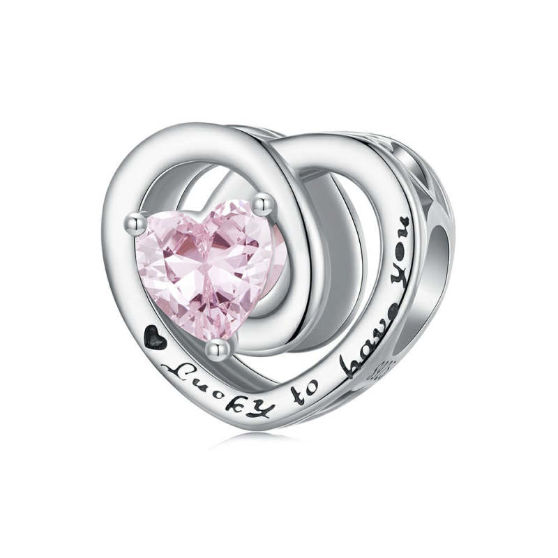 Lucky to Have You Pink Heart Charm Silver