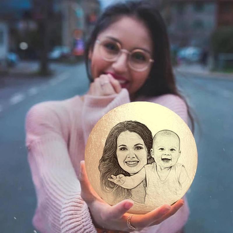 Magic Lunar Customized Moon Lamp feature the most apt attention to details, a sturdy build and the best electrical fittings. With a custom-made moon lamp, you have got the perfect gift for all your friends and family. And it will definitely make her shriek in excitement when you get a customized moon lamp as one of the birthday gifts for her! Prepare to be hypnotized by the enchanting beauty of the moon ¨C in your room! It takes Moon Light 35 minutes to be fully charged. Broadly, a 100% charge light could work continuously for 6-8 hours. If the light is in power saving mode, we promise it could work for two nights. Meet the 3D Enchanting Moon Lamp. Made with 3D technology, you can now realistically experience the out-of-this-world light and mystery of the moon, right where you are. GOOD GIFT - It is a perfect gift for girls boys kids, your loved one or girlfriend, or mother's day gifts.