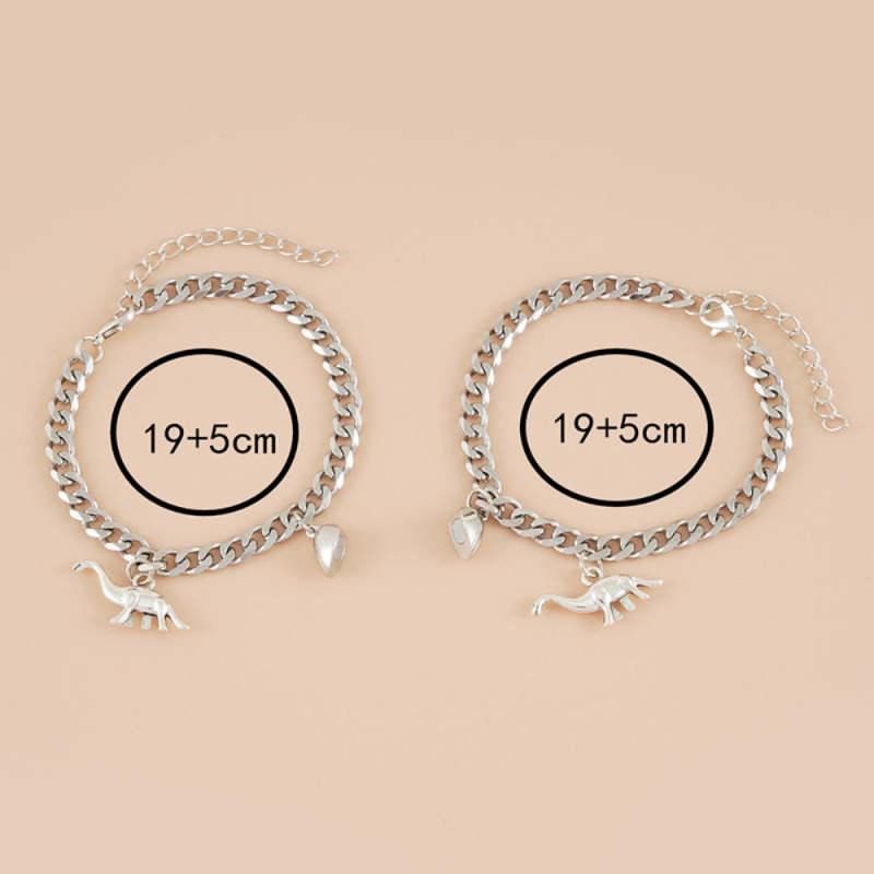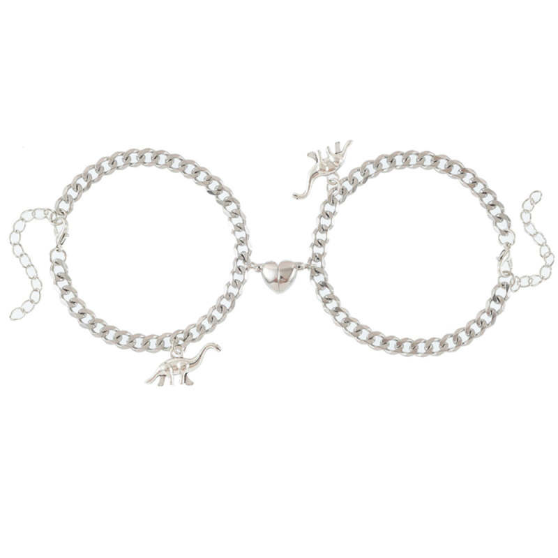 Magnetic Couple Bracelet Set Creative Dinosaur Pendant Stainless Steel Valentine's Day Gift for Couples